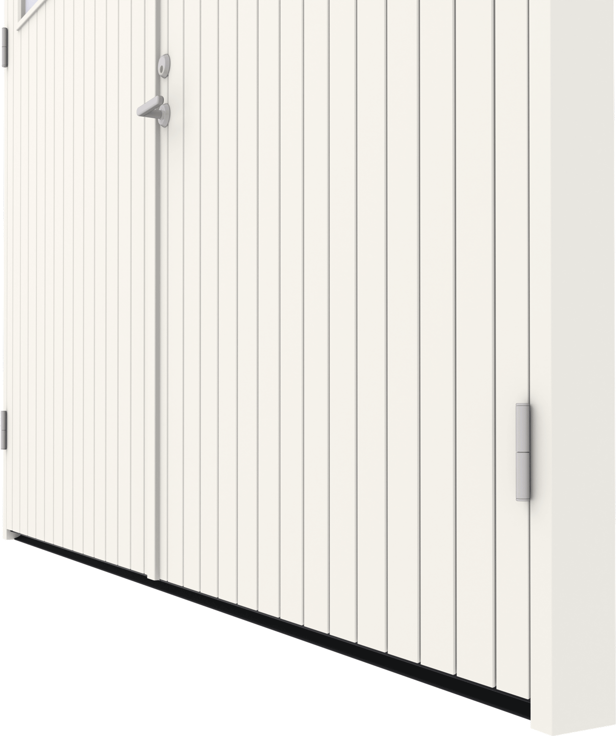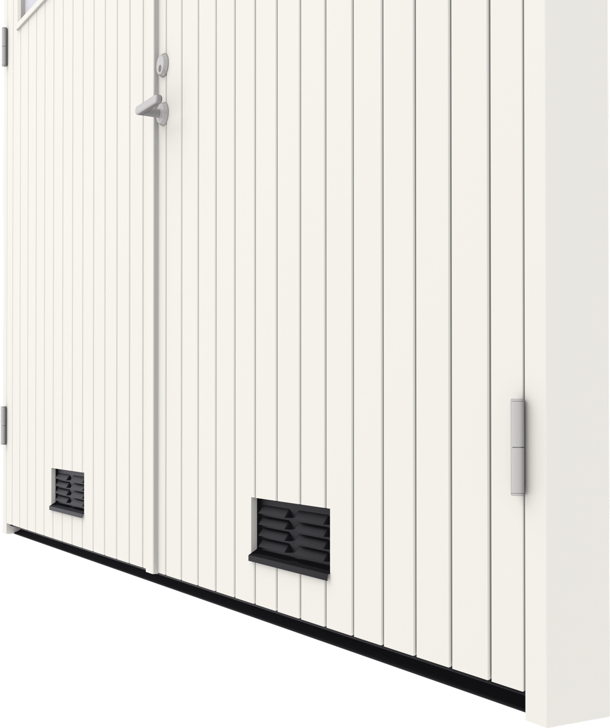 En viktig del av portens uttryck är plåtdetaljerna. Vid grundutförande är plåtar svarta, men genom dina egna val kan du förändra portens utseende till ditt eget. Här väljer du också om du vill ha ventiler i porten och om de ska vara stansade eller infällda. En sparkplåt skyddar portens nedre del mot slitage från smuts, regn och snö.