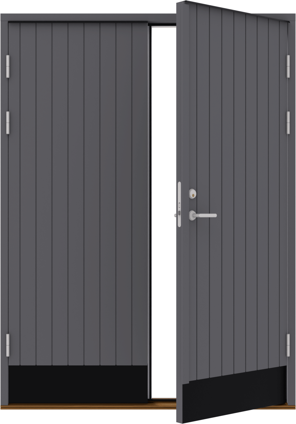 I grundutförandet är plåtdetaljerna svarta, men genom dina val kan du förändra portens uttryck. Ditt kulörval gäller samtliga detaljer så som sparkplåt, dropplåt eller infälld ventil. Vi kan även specialanpassa din produkt med andra plåtalternativ ur vår leverantörs sortiment.
