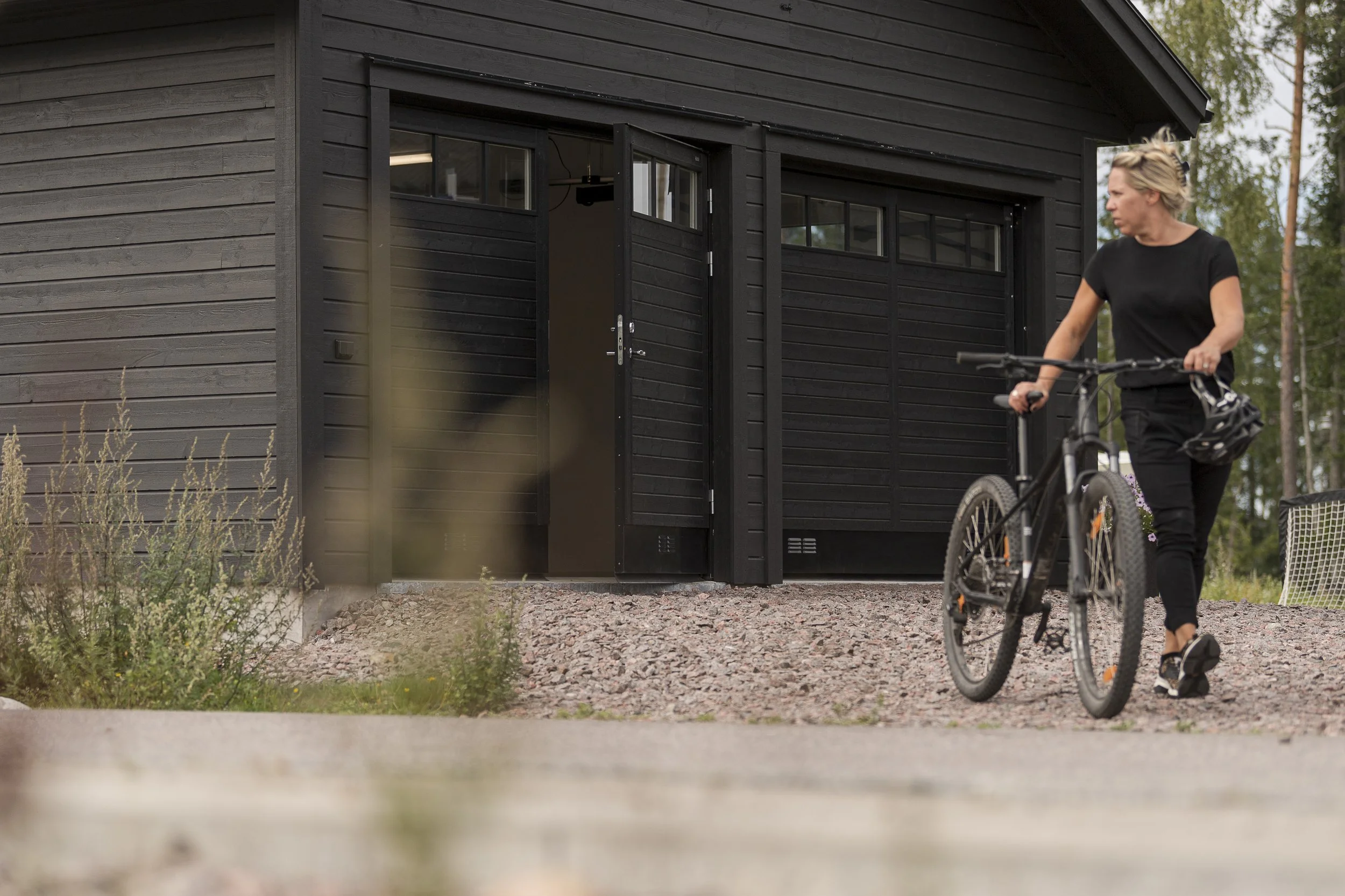 Vi bygger unika garageportar i trä med kvalitetsvirke från Hälsingland. Du väljer mått, panelmönster, träslag, kulör och beslag för att få en port som passar just din byggnad och dina behov.